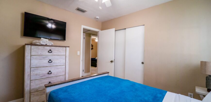 Discover your perfect retreat at the USF Hideaway, an inviting 3-bedroom, 2-bathroom haven offering 1200 sq. ft. of quiet, cozy living space, complete with a fenced backyard and a furnished outdoor patio. Modern amenities such as fast Wi-Fi, smart televisions, and a state-of-the-art security system ensure your comfort and peace of mind. Centrally located in Tampa’s University area, this family- and pet-friendly home is in close proximity to Busch Gardens, the University of South Florida, Moffitt Cancer Center, and James A. Haley Veterans Hospital, making it ideal for extended stays.